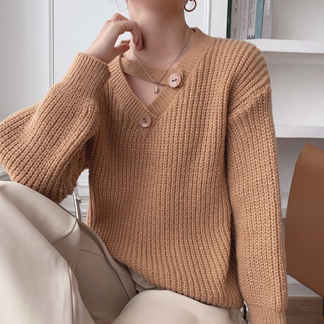 ニットトップス 春秋冬 畦編みニット