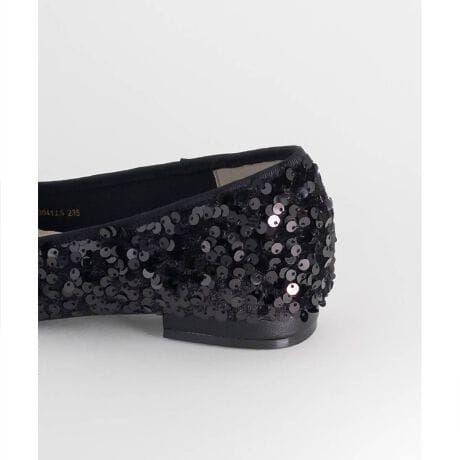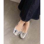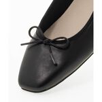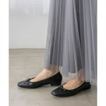 すっきりとしたフォルムとスクエアトゥが上品な足元を演出してくれるフラットパンプス。