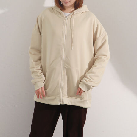 フロント部分は着脱がしやすいZIPデザイン、お洒落に着こなすパーカー