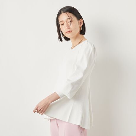 ・シンプルなクルーネックに、ウエストから下がフレア切り替えになった1枚