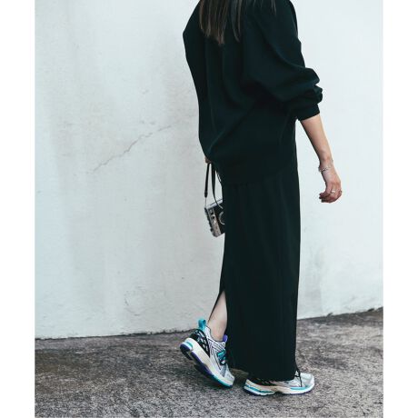 マットな素材感で、どんな素材とも合わせやすく着回し力抜群のスカートです。