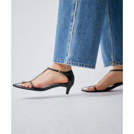 ポインテッドトゥと細いストラップが、足を細く見せつつ、大人っぽい足元に仕上げてくれるストラップサンダル。スタイルアップ効果のある低めのピンヒールで、細いストラップでも足当たりの良い履き心地が魅力。かかとから足首までをストラップで固定することで、前滑りせずに安定感もあり、見た目以上の歩きやすさにこだわった一足。長時間着用しても疲れにくいよう、中敷きにはしっかりとクッションを内蔵。オケージョンシーンにはもちろん、カジュアルスタイルのブラッシュアップとしても頼れるデザイン。