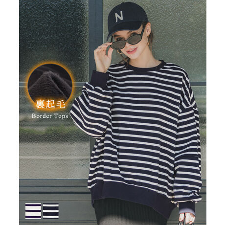 裏起毛 ボーダー コクーンスウェット 全2色