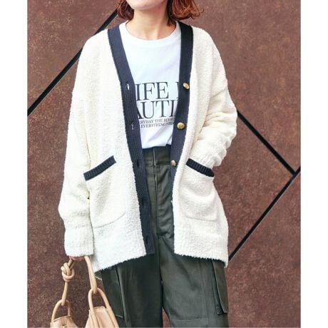 ジャケットライクに着こなせるバイカラーデザインのカーディガン。