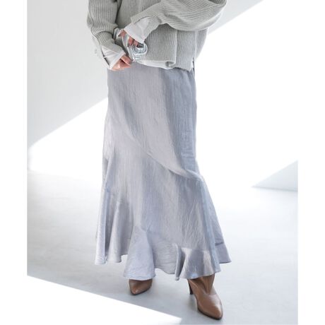 淡いカラーと光沢感がきれいなサテン地が魅力のスカート。