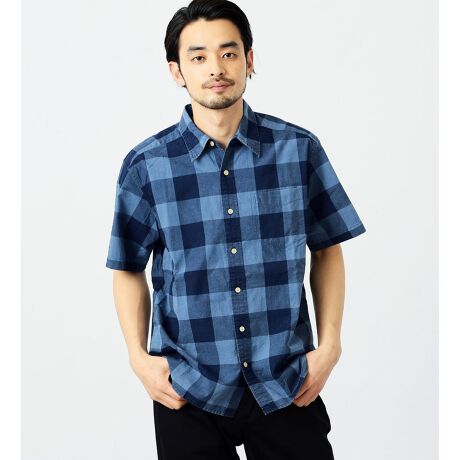 インディゴ染 チェックシャツ (半袖) INDIGO