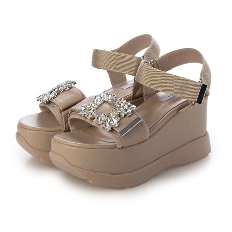 スポサンだけど、スカートやワンピースとも合わせやすい厚底が欲しい!というお声を多数いただき、開発したサンダル。こちらのデザインは大きめのバックルをつけて、さらに女性らしさが溢れる1足にしました。厚底なのでスタイルアップも叶います。