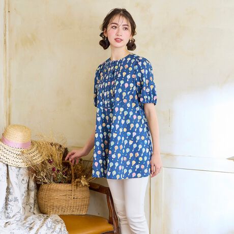 ヨークを切替、ピンタックを施した愛らしいフォルムのデザインでパンツ合わせをおとな可愛くしてくれるアイテムです。