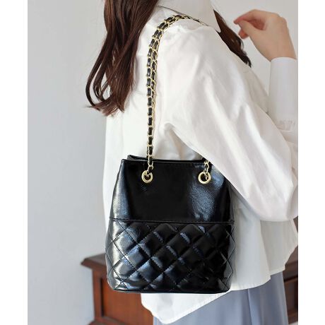 きれいめにもカジュアルにも使いこなせるのが嬉しいキルティングバッグ。