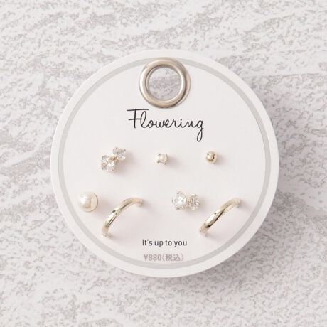 [型番:41028499]【デザイン】7個セットでお得なセットピアス。その日の気分に合わせてピアスを選ぶ楽しさも。今回はパール調やガラス素材を使い女性らしいデザインでまとめております。