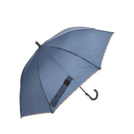 敢えて外出先傘立てで目立つように、カラフルなレッドパイピングにしました。耐風傘とありますが、普通の骨組みだと思います。
