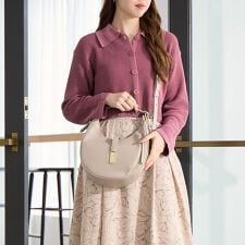 [型番:ANA141]アンナマリーの2WAYハンドバッグ柔らかい牛革をたっぷりと使用した、レザー2WAY手提げバッグ。コロンとしたフォルムが女性らしいデザイン。安心の天ファスナーに両あおりポケット付きで収納力も高め。使いやすい四角いシルエットはONOFF問わず、使いやすいアイテム。着脱可能なショルダーもあるので、おでかけの気分に合わせて使用できます。金具が少な目なのでフォーマルでも使用でき、1本あると重宝する万能バッグです。
