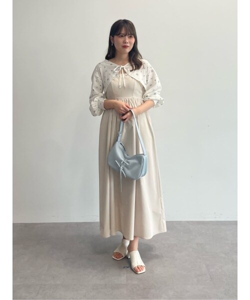 絞ることでメリハリのあるシルエットを生み出します。ふんわりとした裾のボリューム感も可愛らしいポイント。