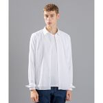 ■デザインシンプルな長袖レギュラーカラーカラーシャツ。背中にダーツをとりウエストシェイプを効かせたシルエット。ジャケットなどインナー向け。ポケットなし。素材を活かしたシンプルデザイン。