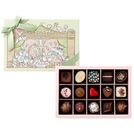 [型番:CT15]1903年創業の本場ベルギーチョコレート。ブランドを代表する伝統の「トリュフ」と、ホワイトチョコフレークで贅沢に飾った新作トリュフ「スノーフレーク」、日本オリジナルテイストの「レッドハート」などトリュフとショコラを “ウサギのテーマパーク”をイメージした心弾むボックスに詰め合わせました。<賞味期限>1ヶ月以上ある商品をお届けいたします。<包装形態>掲載画像が最終形態(包装対応無し)となります。