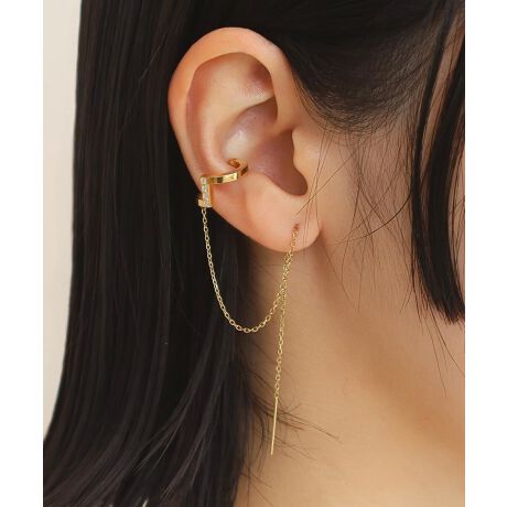 ●イヤーカフからのびるロングチェーンがピアス仕様になっているイヤーカフピアス。
