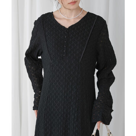 クラシカルな雰囲気の総レースワンピースが登場しました。手首まですっぽり隠れるギャザー入りの長袖にロングフレアーのシルエットが今っぽく、レースから透けて見える袖の適度な肌見せで抜け感が演出できます。顔回りをすっきりと見せるVネックと肩からウエストにかけてのパイピングで華奢見えも◎低身長さんにもうれしいSサイズもご用意いたしました。