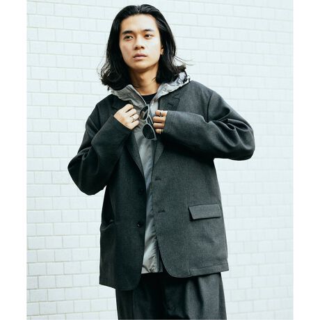 オーバーパンツに合わせたカジュアルな印象のジャケットになり一枚仕立てでボックスシルエットで羽織感を楽しめます。