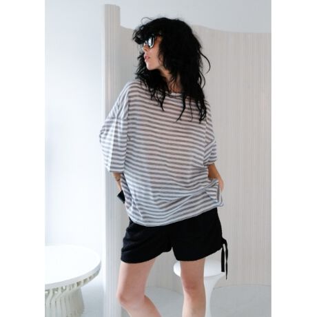 張りとドレープ性の合わさった独特の素材感が、カジュアルな印象のボーダーストライプをエレガントに見せてくれます。