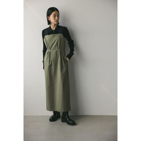 モデル身長162cm(Mサイズ着用)配色のワイドストラップがデザインポイントのワンピース。ウエストタックデザインでスタイルアップに導きます。ジャンパースカートながらさりげないタイトシルエットで上品な女性らしいスタイルが叶います。ストレッチあり、透け感なし。【お手入れ方法】マシンウォッシュ可