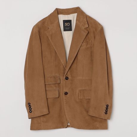 しなやかで上質なスウェードを使用したワイドラペルジャケット。