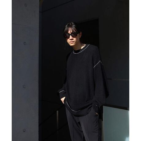 ミニマルなデザインながら首回りや裾・袖口に入ったダメージ加工が雰囲気抜群のクレーネックニットです。ワンサイドにのみ配置されたジップがデザインのアクセントになっています。ゆったりとしたシルエットでシンプル&ラフなコーディネートに映えるアイテムです。カラーはベーシックなブラック、ベージュに加え、差し色にもなるブルーの3色展開です。