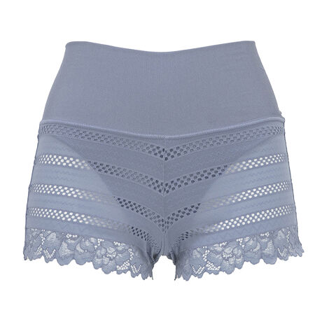 ブラと共通のレースをたっぷり使った、1分丈タイプのショーツです。