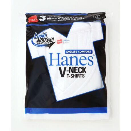 Hanes/へインズ アオラベル 無地 Vネック 半袖Tシャツ/3枚入り 青パックT