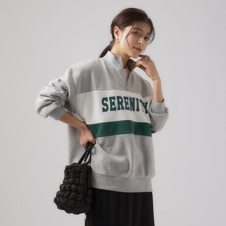 【洗える】ハーフZIP 配色ロゴスウェット