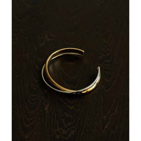 太さと形状の異なる2つのバングルををレイヤードしたようなデザイン。ゴールドとシルバーを組み合わせたMIX感もポイント。