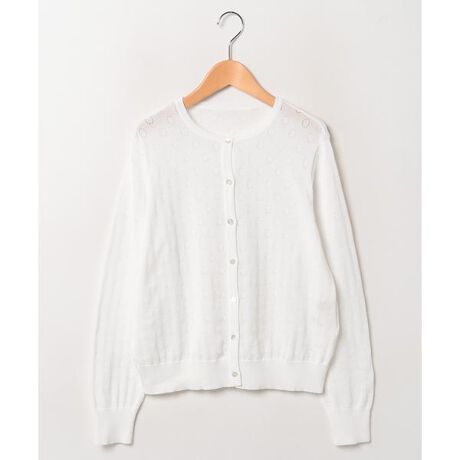 サークル状の透かし柄編みが軽やかな表情を演出してくれる長袖ニットカーディガンは、すっきりとしたジャストサイズなシルエットで清潔感も忘れない仕上がりが◎。さらりとした手触りが心地いいコットン素材を使用しているから、ロングシーズンスタイリングできます。 ※定価(税込)は、2023年06月29日のセール開始前の店舗における販売価格です。
