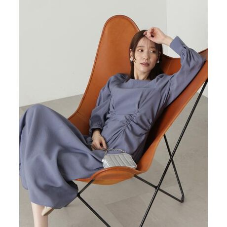 前ウエストにギャザーディテールを入れ、後ろウエストにシャーリングを施した、ウエストコンシャスなワンピースです。着ていただくだけで、ウエストラインをきゅっと締めつつ女性らしいシルエットを演出。袖山にギャザーを寄せたやや構築的なフォルム、袖口まわりはタックギャザーを入れるなど、テクニックが効いたデザインがアクセントになります。足元はパンプスやブーツまで履けるため、雰囲気が違うスタイリングをキレイめONスタイルから、休日のお出かけにも幅広いシーンで着用いただけます。