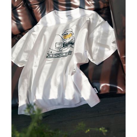 ヒゲのキャラクターが趣味を楽しんでいる、手書き風なグラフィックのTシャツ。