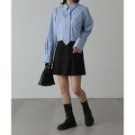 程よい肉感の柔らかい二重織素材のハイウエストミニスカパン。今季らしいミニ丈ですが、インナーがショートパンツになっているので安心感があります。切り替えと裾に向かって広がる程よいマーメイドライン、高めのハイウエストラインでスタイルアップして見えます。ネクタイセットショート丈シャツや総柄ロゴニットを合わせたスタイリングがおすすめ。※モデルの着用画像の場合、光の当たり具合により、実際の色味と異なって見えることがございます。色味は、商品単体の画像をご参照ください。