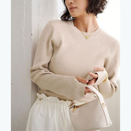 ゆったりしたニットの中に着て手元を出すのもおすすめ。