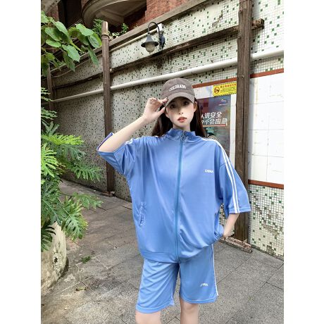 ダブルライン シンプル 半袖ジャージ セットアップ 上下2点セット (セットアップ着用可)