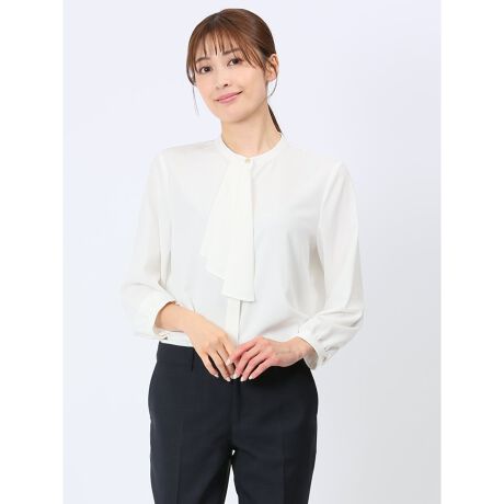 【ストレッチ ウォッシャブル イージーケア】m.f.エディトリアル ラッフル 長袖比翼ブラウス