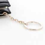 バッグやアクセサリーに簡単に取り付けられるレザーストラップが付いています。