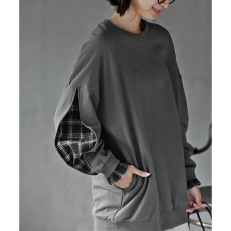 袖からのぞく布帛地がコーデを盛り上げてくれるトップス。