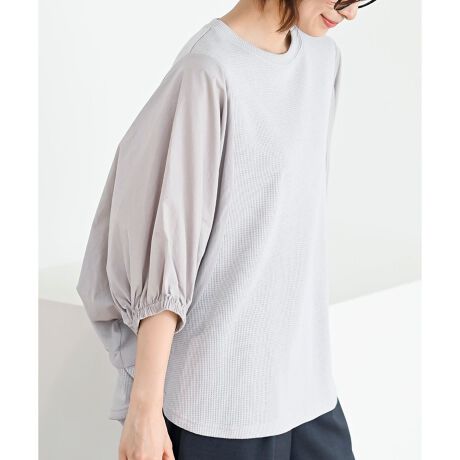 ふんわり袖の大人カジュアルなワッフルトップス