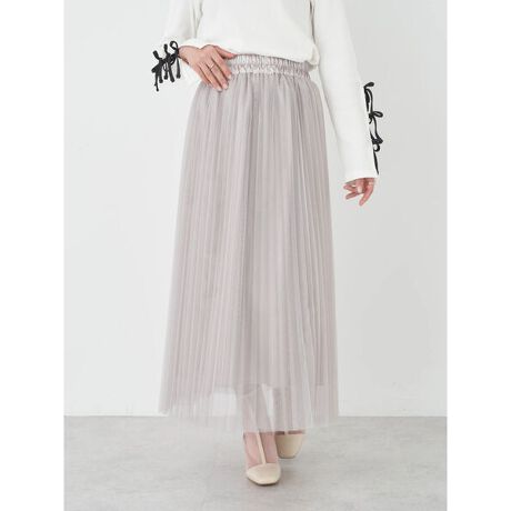 軽やかなチュールにプリーツ加工を施したロングスカート。