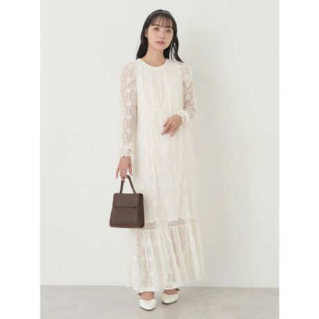 総レース仕立てで華やかな印象に仕上げたワンピース。