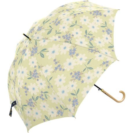 カラフルな傘生地に動植物の絵柄が描かれた、ワンタッチ耐風ジャンプ傘。親骨の長さ60cmタイプ。【丈夫なグラスファイバー製】親骨や受け骨には、強度と柔軟性に優れたグラスファイバーを骨を採用。軽量でしなやかな素材なので、風の強い日だって安心な耐風傘。【木製のハンドル】手元は滑らかな手触りの木製ハンドル。カジュアルスタイルでもオフィスでも、気軽に持てるナチュラルさが魅力。【ワンタッチ傘】片手に手荷物があるときでも安心なワンタッチジャンプ傘。突然の雨でもサッと開ける。【スナップボタン式】傘生地の留めるバンドは、スナップボタンでバチンっと留めやすい!【豊富なデザイン】バラエティー豊かな傘生地はパッと目を惹き雨の日も楽しい気分に♪もちろん雨粒をしっかり弾くはっ水加工済み。