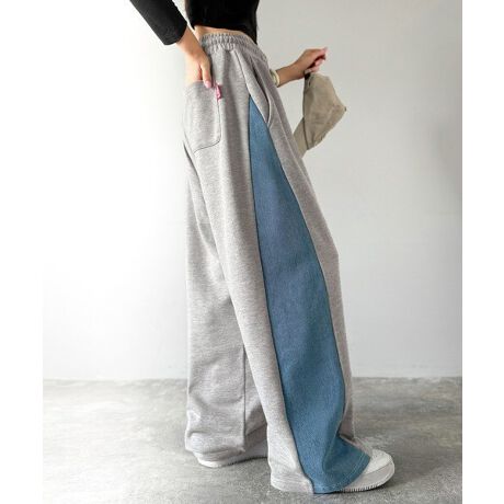 サイドの切り替えが目を惹くデザインスウェットパンツ。