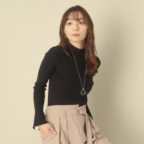 ベーシックなリブニットにフレア袖ディテールがさり気ないアクセント。