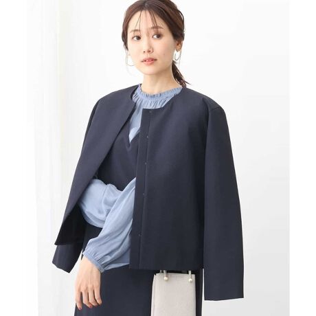 すっきりと見えるシルエットがポイントのノーカラーブルゾン。ボリュームもなくストンと落ちるすっきりとしたシルエットが上品な印象に着こなせます。