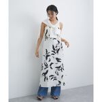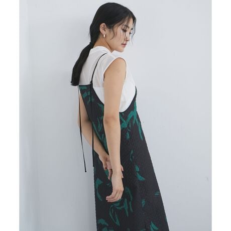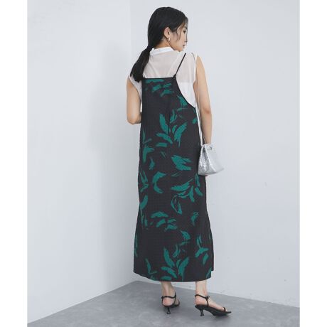 筆で描いたような、葉っぱのような柄のふくれジャガード素材のキャミワンピース。