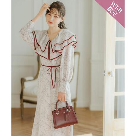 New Year's Happy One-piece【Design】・女性らしいマーメイドシルエットがボディラインを美しく魅せるワンピース。・優し気な雰囲気を演出するカラー展開と配色のパイピングデザインが上品な可愛らしさを引き立てます。・ラッフルを二重にすることで顔周りを華やかな印象に♪・ウエスト部分のリボンでウエストラインを調節可能です。・ハイウエスト位置でのウエストリボンでスタイルアップも♪・左ファスナー仕様。【Fabic】・シワになりにくいポリエステル生地を使用。・スムースな裏地付き。・ご自宅でお手入れが出来るのも嬉しいポイント♪・ベージュ(WEB限定カラー)、ピンク、ボルドー、ブルー、ネイビーの5色展開となります。【Care】手洗い可能
