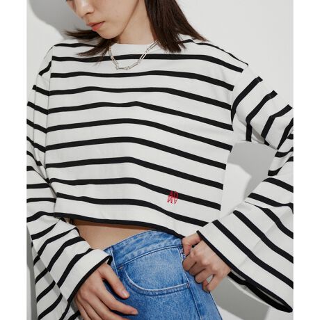 フレアスリーブがアクセントになったロングスリーブTシャツ。袖のボリュームと、コンパクトな丈感がバランスのいいシルエット。左裾側には、刺繍でロゴをさりげなく施しているのもデザインポイント。