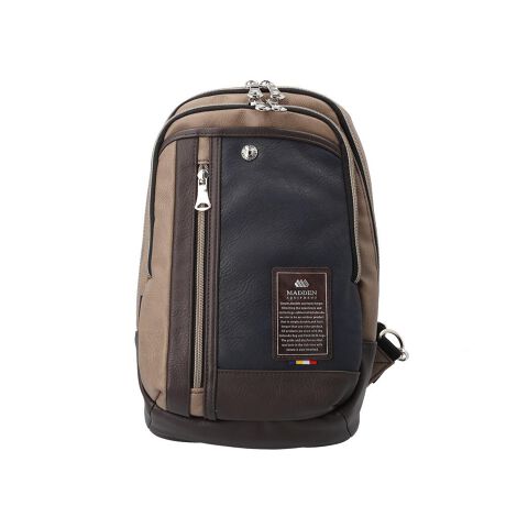 タウンにもアウトドアシーンにも使える「MADDEN EQUIPMENT」からボディバッグL(TMPI-04)が新発売♪【こだわりデザイン】レザー調の生地とシルバーの金具がスタイリッシュなデザイン◎ブランドのオリジナルネームやボタン配置等、細部までこだわりある作り。【エメラルドカラーの内生地】オシャレだけじゃなく視認性も高めてくれるエメラルドカラーを内生地に採用。探してる小物もパッと見つけやすい。【ラウンドファスナー仕様】メインルームとフロントの収納ポケットにはラウンドファスナーを採用。手前に大きくコの字に開き荷物が取り出しやすい◎【マストアイテムの収納に】・500mlペットボトル、長財布、手帳・ハンカチ等のお出かけに必要な小物をひとまとめに♪ミニマルに収納が可能!【クッション入りのポケット】厚めのクッションが入ったオープンポケット付き。B5サイズのミニタブレットやモバイルバッテリー等のガジェッ類の収納に便利!【ポケット多数】収納ポケット多数搭載!小物が多くなっても整頓しながら入れられるのも嬉しいポイント。【左右切り替え可能】ご自身の使い勝手に合わせてショルダーベルトの切り替えが可能。左右どちらも対応◎【快適な使い心地】背面は長時間背負っていても蒸れないメッシュ仕様!負担がかかりづらい軽さとクッション入りなのも嬉しいポイント。【お手入れ楽チン】合皮素材なので雨に強いのも魅力的☆毎日のお出かけに役立つアイテム♪(※防水・はっ水機能はございません。)【ポケット仕様】メインルーム・・・オープンポケット×1(クッション入り)フロント・・・オープンポケット×1(マグネットボタン付き)、ファスナーポケット×2